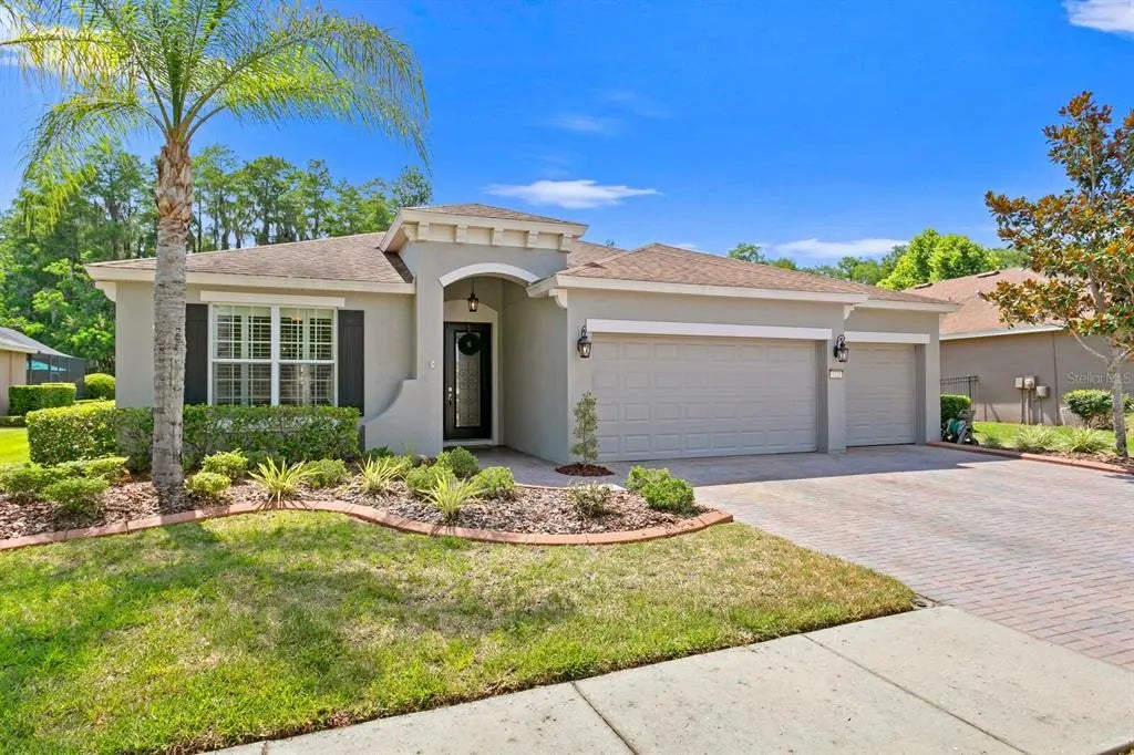 Under contract-accepting backup offers. **Take a VIRTUAL VIDEO TOUR of this home now at www.3321Maple.com** Welcome home to this beautiful 2012 home in the highly sought after gated Waterbridge section of Stonebrier in beautiful Lutz, FL. Located on a spacious wooded conservation lot along a quiet street, this home is zoned for one of Hillsborough county’s premier school districts – all A-rated schools (McKitrick/Martinez/Steinbrenner)! With over 2,400sqft of living space, this home features 4 bedrooms, 2 full baths and an oversized 3-car garage! As you enter the sprawling brick paver driveway, you’ll find a freshly painted ranch home with fantastic curb appeal. The tropical landscaping and continuous curbing around the landscape beds along with the custom leaded-glass front entry door provides a great welcoming entrance. Enter through the front door into a spacious foyer w/11ft ceilings and oversized, diagonal, ceramic tile floors throughout the main living areas – allergy friendly with no carpet anywhere in this home! Just off the foyer, graceful arches open to a combined living and dining room, complete with crown molding. You’ll also find plantation wood shutters throughout this lovely home. The foyer then leads to an open-concept kitchen & great room. The upgraded kitchen includes new granite counters, 42” wood cabinets, tiled backsplash, workstation desk, large island w/breakfast bar, NEW stainless appliances, porcelain farm sink & a large casual dining area with beautiful backyard views. The split floor plan features 3 spacious bedrooms that share a full hall bath. Each bedroom features beautiful hardwood floors and spacious closets. The 2nd full bath has also been completely updated and includes quartz counters and double sinks. At the back of the home is the Primary Suite with 2 large closets for plenty of storage, hardwood floors, and the fully renovated spa-like Primary Bath w/free-standing garden tub, frameless glass walk-in shower, dual sinks w/quartz counters and separate water closet. Triple sliders lead to an amazing, extended custom 330sqft screened lanai, making it a perfect outdoor entertaining space with beautiful sunset views through the cypress trees and conservation area. Additional features include a large laundry room w/utility sink, oversized 3-car garage, updated light fixtures and more! Enjoy resort quality community amenities in Stonebrier including a zero-depth pool w/splash area, waterslide, poolside cabanas & lounge chairs, playground & 24-hr fitness center. Stonebrier also features community basketball, soccer & cricket fields along w/lots of lakes, ponds & conservation views.