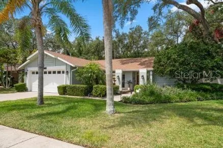 Under contract-accepting backup offers. An unparalleled opportunity awaits you here! You can embrace a carefree lifestyle in the 3/2/2 with a PERSONALITY All its own. With a Rustic, open floor plan, BEAMED Vaulted Ceiling and a fireplace to add to the ambiance, knowing the ROOF, AC System are NEWER...adds to your PEACE of MIND. This immaculate home has been loved and you can tell, as you enter and experience its light and airy feeling. The kitchen is well-equipped with stainless steel appliances, breakfast bar and an informal dining area. A full-sized, front-loading washer and dryer will be installed in the adjoining closet area prior to closing. The interior access to the spacious 2-car garage is from the kitchen area. With a true SPLIT Floor Plan, 2 bedrooms and the main bath are separated from the Primary Bedroom/Bath, which is a generous size, by the Large Living Rm/Great Rm., that features a real-working fireplace and is open to the formal Dining Room. The Sliders & French Doors give you a peek at ANOTHER World beyond the Cozy Interior of this home as you see the beauty of the back yard. Perfect for your enjoyment, entertainment & low maintenance, the vinyl fencing, anchored gazebo, side deck area & HOT TUB (which can remain with the sale)are sure to please. Fall in LOVE with the PRIVACY and LUSH Greenery that adjoins the back side of this home's lot, as it is a CONSERVATION Area, providing Nature as your ONLY Neighbors, something MANY OF US only DREAM About! Don't delay in seeing this TODAY...you'll be glad you did.