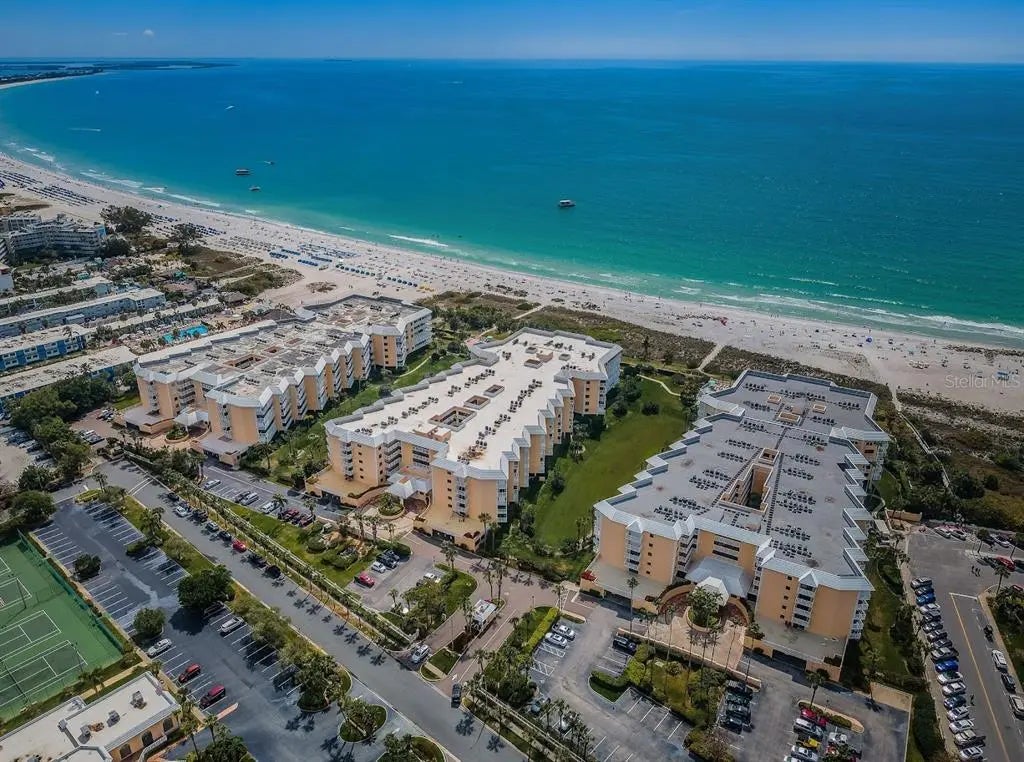 Under contract-accepting backup offers. Rarely available corner unit with direct Gulf views and the largest floor plan in Silver Sands—this spacious 3-bedroom, 2.5-bath condo offers the ultimate in coastal living. A sprawling wraparound balcony invites you to enjoy stunning sunsets and sea breezes from multiple vantage points, with plenty of room to dine, lounge, and entertain outdoors. Inside, a generous living room opens seamlessly to the balcony and offers breathtaking water views. The spacious kitchen is well-connected, with sliding doors to the balcony for easy access while entertaining. Wake up to the Gulf in your primary suite, complete with dual walk-in closets and a spa-style bath featuring double vanities, a soaking tub, and separate shower. At the opposite end of the unit, two additional bedrooms and a bathroom provide privacy for guests or family. One has its own private balcony with water views and a storage closet. A dedicated laundry room and powder bath round out the thoughtful floor plan. Silver Sands is a gated beachfront community offering resort-style amenities: two beachfront pools (heated in winter, cooled in summer), hot tubs, a private walkway to St. Pete Beach, clubhouse with a fitness center, billiards room, large gathering space and catering kitchen, outdoor patio seating, six brand-new pickleball courts, and two full-size tennis courts. This isn’t just a condo—it’s a lifestyle. Ideally located at in the heart of St. Pete Beach, you're moments from local favorites, vibrant beach bars, casual dining, boutique shops, and just a short drive to downtown St. Pete’s arts and restaurant scene. Here, every day feels like vacation.