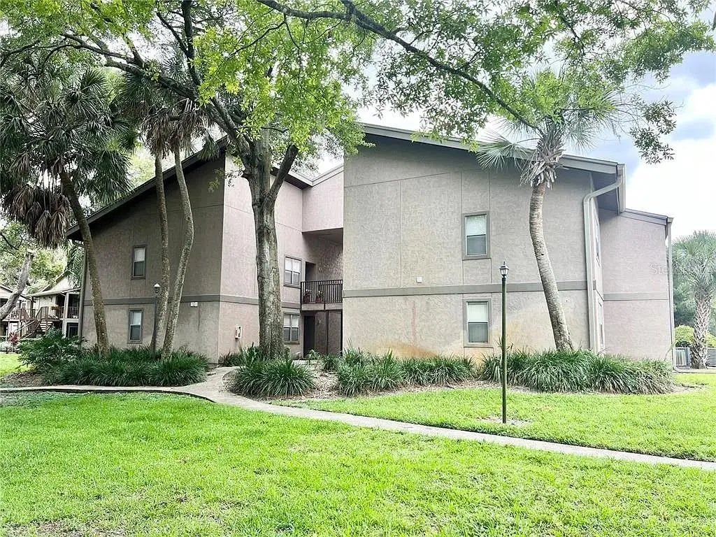 Under contract-accepting backup offers. Welcome to this 2-bedroom, 2-bathroom condo with 1,083 square feet of living space, located just 5 minutes from the University of South Florida main campus and less than 30 minutes from downtown. This home combines convenience and comfort with a modern touch. As you enter, you'll notice the open floor plan and the new laminate flooring installed in 2021, which runs throughout the entire home. To the left is the dining area, and to the right is the kitchen, equipped with stove, refrigerator, and dishwasher. The living area features a ceiling fan and sliding doors that lead to a large back patio, perfect for outdoor relaxation. The bedrooms are split for privacy. The primary suite on the right has its own patio access, a ceiling fan, a walk-in closet, and an suite bathroom with a shower/tub combo. On the left side of the living area, the second bedroom is spacious with a large closet and ceiling fan. Adjacent to this bedroom is a full bathroom with a shower/tub combo and a closet with a washer and dryer. This condo is ideal for anyone looking for a low-maintenance home close to the University of South Florida and city amenities. Enjoy the practicality and comfort this condo offers.