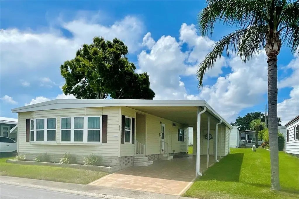 This fabulous two bedroom/two bathroom double wide manufactured home is truly move-in ready and located in a friendly and active 55+ community where you own the land! Step inside to find a light and airy open floor plan featuring upscale finishes throughout. The living room and dining areas are bright and inviting, ideal for relaxing or entertaining guests. The gorgeous kitchen boasts updated cabinets with soft close doors and drawers, quartz countertops, and stainless-steel appliances. Completely updated bathrooms with new vanities, fixtures, and lighting. Beautiful interior featuring fresh paint. Newer Berber carpets in living areas and luxury vinyl in kitchen and bathrooms. Exterior features include a two-car covered carport, three exterior doors for easy access, and attractive landscaping/curb appeal. Roof 2020. AC 2022. All this at Blue Jay Estates PLUS a low monthly fee of $230 a month includes escrow reserves, water, sewer, trash, lawn care, and more! Non-flood zone! Blue Jay has a very active social club, lots of activities, a heated pool for year-round enjoyment, shuffleboard and Bocce courts. There is a designated area where you can park your boat or R/V at no additional fee if space is available when requested. Near beaches, the Pinellas trail, parks, shopping, medical centers, and airports.