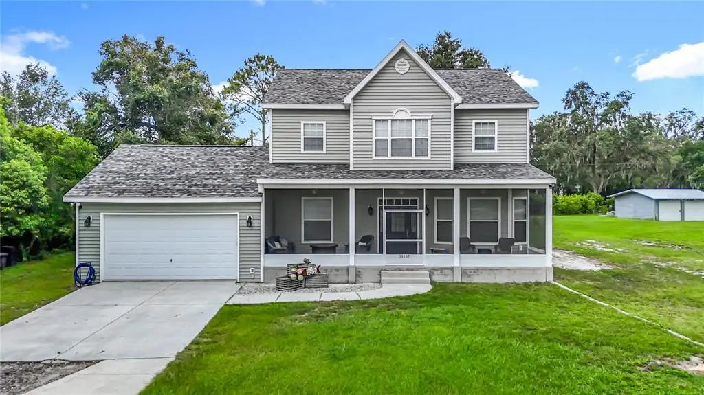 Peaceful Lake Front. 2 bedroom 2.5 bath with Den/Guest Room that can be easily be converted into a 3rd bedroom seller will re open the closet at sellers expense. No HOA. No CDD. Roof 2023. AC units 2025. New Carpet in the bedrooms and family room. Steinbrenner district. In house vacuum system. In wall pest control system. Kinetico water system. Ring doorbell. Lorex home security system. Open floor plain. Wood burning fire place. Kitchen is open to the family room offering stainless steal appliances, gas stove, stlestone countertops, over sized eat in bar and plenty of cabinets with lower cabinet lighting. Family room new carpet, wood burning fire place, high ceiling, built in entertainment center with shelving and lighting that can accommodate up to a 55 tv. Dining room hard wood bruce flooring and has a great view of the lake. Primary bedroom new carpet, ceiling fan with light, built in shelving and a walk in closet. Primary bathroom tile flooring, double vanity sink, walk in shower and a jetted tub for relaxing. Laundry room large enough to accommodate washer, dryer, refrigerator, wash sink and cabinets for storage. Screened in front and rear porches 8x34. Over sized garage 28x20 with attic space for storage. There is also room enough on the property to accommodate an RV or Boat. Call and make your appointment today.