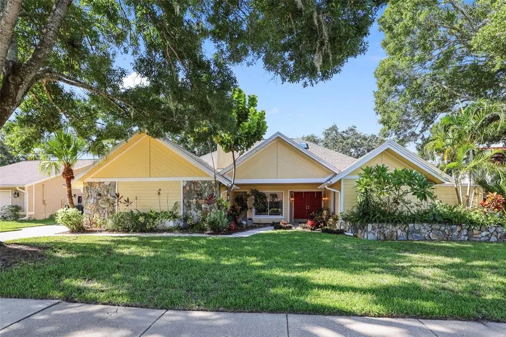 Under contract-accepting backup offers. Welcome to this beautifully updated 4-bedroom, 2-bathroom pool home, ideally located on a quiet, friendly cul-de-sac just 25 minutes from the airport and close to both Northwood Commons and charming Safety Harbor. With a new roof installed in 2024, this home combines peace of mind with modern comfort. Inside, tall ceilings create a beautiful sense of openness and flow throughout the open-concept kitchen, living, and dining areas. The kitchen, fully renovated in 2022, features all new stainless steel appliances, a slide-out pantry, built-in spice storage, a breakfast bar, and a reverse osmosis system under the sink. The separate utility room offers added convenience for daily living. The living room centers around a cozy fireplace with a pull-out TV—perfect for relaxing or hosting movie nights. The spacious layout offers a split floor plan, providing privacy for all bedrooms. Step outside to your own private oasis: a sparkling saltwater pool surrounded by an open lanai and a custom outdoor bar, ideal for entertaining guests or enjoying quiet weekends at home. A two-car garage completes this well-maintained and thoughtfully designed home. Move-in ready and located in a welcoming neighborhood, this home offers the perfect blend of comfort, style, and convenience.