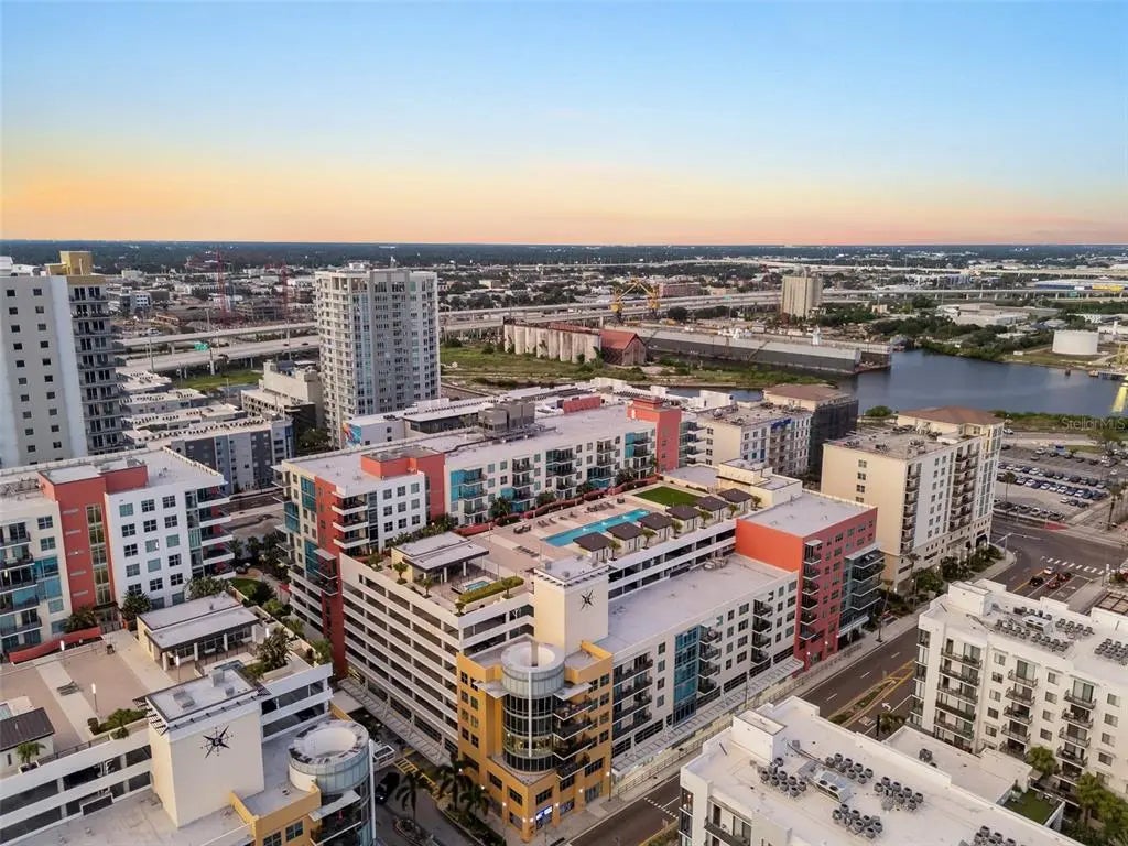 Discover a one-of-a-kind urban sanctuary in the largest corner residence at Grand Central at Kennedy, positioned in downtown Tampa. This professionally designed home offers an expansive floor plan that combines stunning aesthetics with ultimate functionality. The chef’s kitchen is a masterpiece, boasting custom Wellborn cabinets, a massive quartz island with double waterfall edges, continuous quartz backsplash, and premium Viking appliances. This space flows seamlessly into the great room, where 180-degree floor-to-ceiling windows offer spectacular panoramic views flooding the interior with an abundance of natural light while being controlled effortlessly by motorized sunshades. This unique residence features a split-bedroom layout with two primary-style suites and a chic powder room for guests ensuring privacy and comfort. The primary suite is a lavish retreat with huge custom-built walk-in closets and an elevated, spa-like en-suite. The second oversized bedroom also includes a private en-suite and spacious walk-in closet with custom built-ins. Fine details are evident throughout, from the stunning Italian tile floors, custom dry bar, and upgraded fixtures. This residence also includes one of the largest private terraces in the building, finished with turf. The luxurious features extend beyond the interior, most notably, a private rooftop poolside cabana — a rare amenity with a full bath, beverage refrigerator, shower and storage. The unit also comes with two oversized parking spaces behind a secondary private gate, a large 8-by-10-foot climate-controlled storage locker, and a semi-private elevator for added security and convenience. Additional social amenities are on the first-level courtyard featuring covered outdoor social areas, Crunch Fitness, Ginger Beard Coffee, Pour House, The Poké Company, Massage Envy, Gelato-Go and Stageworks Theater. The Channelside District is adjacent to the Water Street District and desirable because of its short distance to the adjacent Publix, the Madison Street Park with pickleball courts, Starbucks, CVS, and trolley access to Port of Tampa, Ybor City, Sparkman Wharf, Amalie Arena and the Tampa Riverwalk.