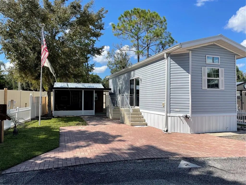 Under contract-accepting backup offers. Tiny Homes in Nudist Communities with outdoor living spaces are quite popular these days in Pasco County Florida. This charming Chariot Eagle, HUD approved Hawk Elite park model has the high ceilings with crown molding, rounded corner bead and drywall, extra transom and double pane windows with wood valiance's. This floor plan flows so nicely and every ounce of space is usable. The kitchen has plenty of cabinets, tiled backsplash, recessed lighting, a preparation island that is moveable and a bay window at the South East side. Living room is nice and bright with extra transcom window, decorative crown molding, trey ceiling and sliding glass doors with UV Ray film. The bedroom also conveniently has built in drawers, cabinets, and two closets with mirrored doors. Sconce lighting is on both sides of the bedroom wall. Pocket doors both in bedroom and bathroom provide maximum functional space. Bathroom shower has tiled walls. There is an indoor utility closet with hook up for a stackable washer and dryer but owner opts to have the stand alone washer and dryer in the workshop. The workshop has its own window unit and has electricity and lighting. Extra cabinets and a sink and countertop was installed in the workshop. The screened porch is attached to the workshop. A small private courtyard and outdoor shower with hot and cold water is at the North West side of the property behind the workshop. Another screen enclosure under roof is at the North East side attached to the shed. This is perfect for outdoor exercise equipment or a place for extracurriculars outdoor hobbies. Plenty of pavers on the lot for parking two cars. Flag pole is at the SouthWest end of the property. This property is turn key and is being sold furnished with the television, decor, linens, towels, outdoor furniture, cook and glasswares, and two sheds behind the workshop. Residences enjoy access to the community pool, clubhouse, pavilion, and laundry room. Paradise Pines is a gated nudist community. Only residences and their guests have access to enjoy the amenities. Paradise Pines is within a half mile from Lake Como Nudist Resort, One mile from Paradise Lakes Resort, and 6.5 Miles from Caliente and Bare RV Resort. This community is about 30 minutes from TPA international airport, 40 minutes to an hour from the Gulf of Mexico, and close to shopping and restaurants'. Only 15 minutes to Tampa, minutes from the Suncoast Expressway and I-75.