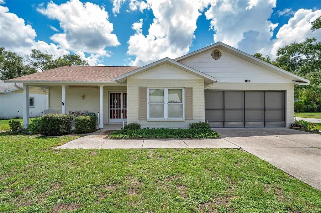 Under contract-accepting backup offers. WELCOME TO YOUR SWEET HOME at 4646 Lacrosse Ct, New Port Richey, FL in the social 55+ community of Heritage Lake. Your SUPERB 2 bedrooms, 2 bathrooms, 2 car garage home sits on a FANTASTIC corner lot on a cul de sac. This is a NO FLOOD & NON-EVACUATION ZONE with LOW HOA & house did NOT sustain any damage from the storms. Key exterior features are covered front porch where you can meet & greet your neighbors, carriage lights, private mailbox, double driveway, screens on garage door, rain gutters, lamp post, faux brick front elevation & TROPICAL landscaping. As you step inside through the double front doors, you'll LOVE the OPEN FLOOR PLAN. The OPEN CONCEPT plan consists of the foyer, kitchen, dinette, dining, living, family & Florida rooms. The BRIGHT eat-in kitchen with dinette space features laminate counters, plentiful cabinets, appliances, pantry closet & double sink. Create PRICELESS memories during mealtime in the large dining room featuring a CLASSIC chandelier & double sliding glass doors to the family room. Relax in the living room or enjoy evening breezes in the Florida room (currently set up as the art studio). After a long day, retreat to the primary bedroom suite with private bathroom. The primary bedroom can easily accommodate king size furniture & has a ceiling fan & large walk-in closet. The PRIVATE bathroom consists of a frosted window for privacy, sink, newer toilet, expansive laminate counter, cabinet storage & step-in shower with safety grip handles. In this split floor plan, the second bedroom is located on the opposite wing of the home. This guest bedroom features built-in closet & the full bathroom nearby. The 2nd bathroom has a nice vanity with storage, cultured marble counter, linen closet in the hall & tub/shower combo with safety grip handles. The house systems have been UPDATED with proper county permits: roof (1/2024), flat roof (8/2022), garage door replaced (3/2016), DOUBLE-PANE, LOW E, THERMAL TINTED WINDOWS (11/2010) & newer AC. WONDERFUL BONUS: The laundry area in the garage has washer & dryer machines included. Location is PERFECT near shopping, restaurants, schools, parks/recreation facilities, medical plazas, places of worship, beaches & tourist attractions. MAKE THIS YOUR FUTURE HOME!